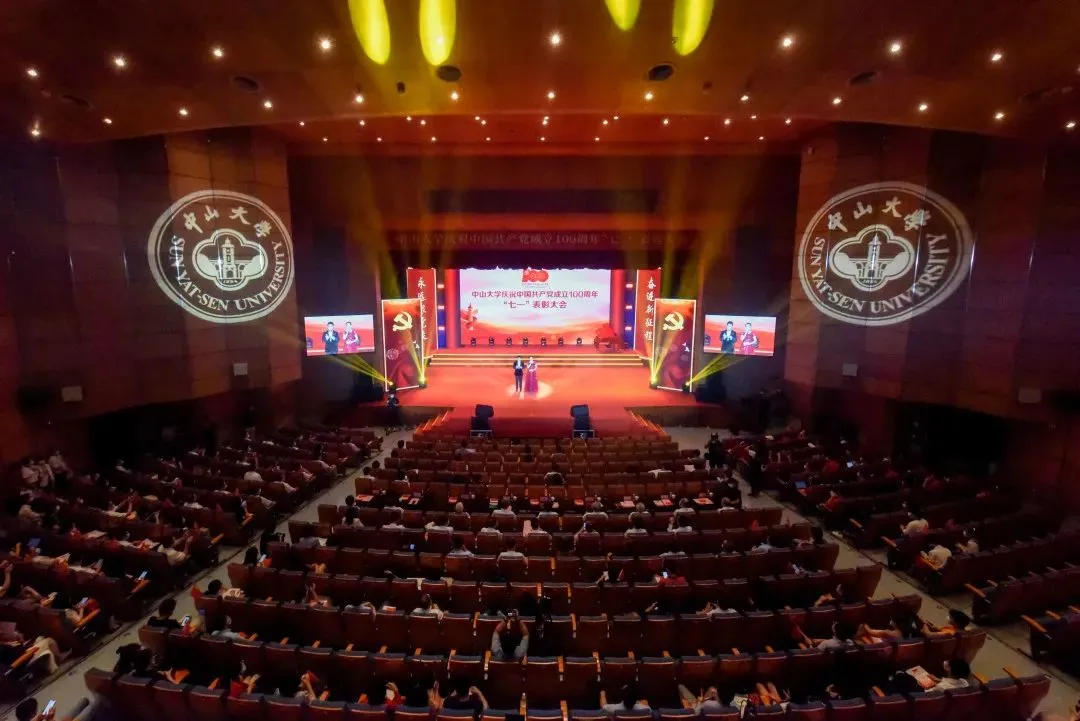 中山大学庆祝中国共产党成立100周年“七一”表彰大会在梁銶琚堂举行。