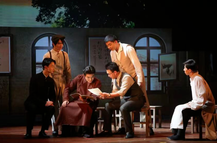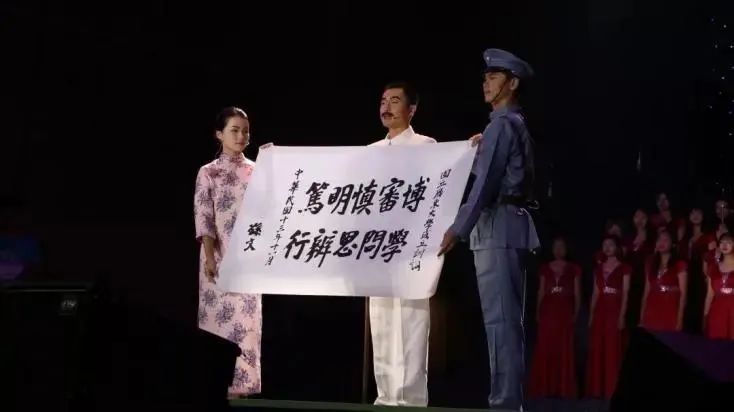 中大学子在梁銶琚堂上演原创音乐话剧《笃行》(图源:“中山大学”公众号)